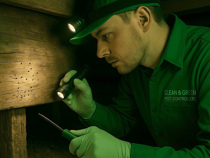 Finding termites during an inspection doesn’t mean disaster — it means you’ve caught the problem early and can take the right steps to protect your property. At Clean & Green Pest Controllers, our licensed timber pest specialists follow a proven process when live activity or termite damage is discovered: