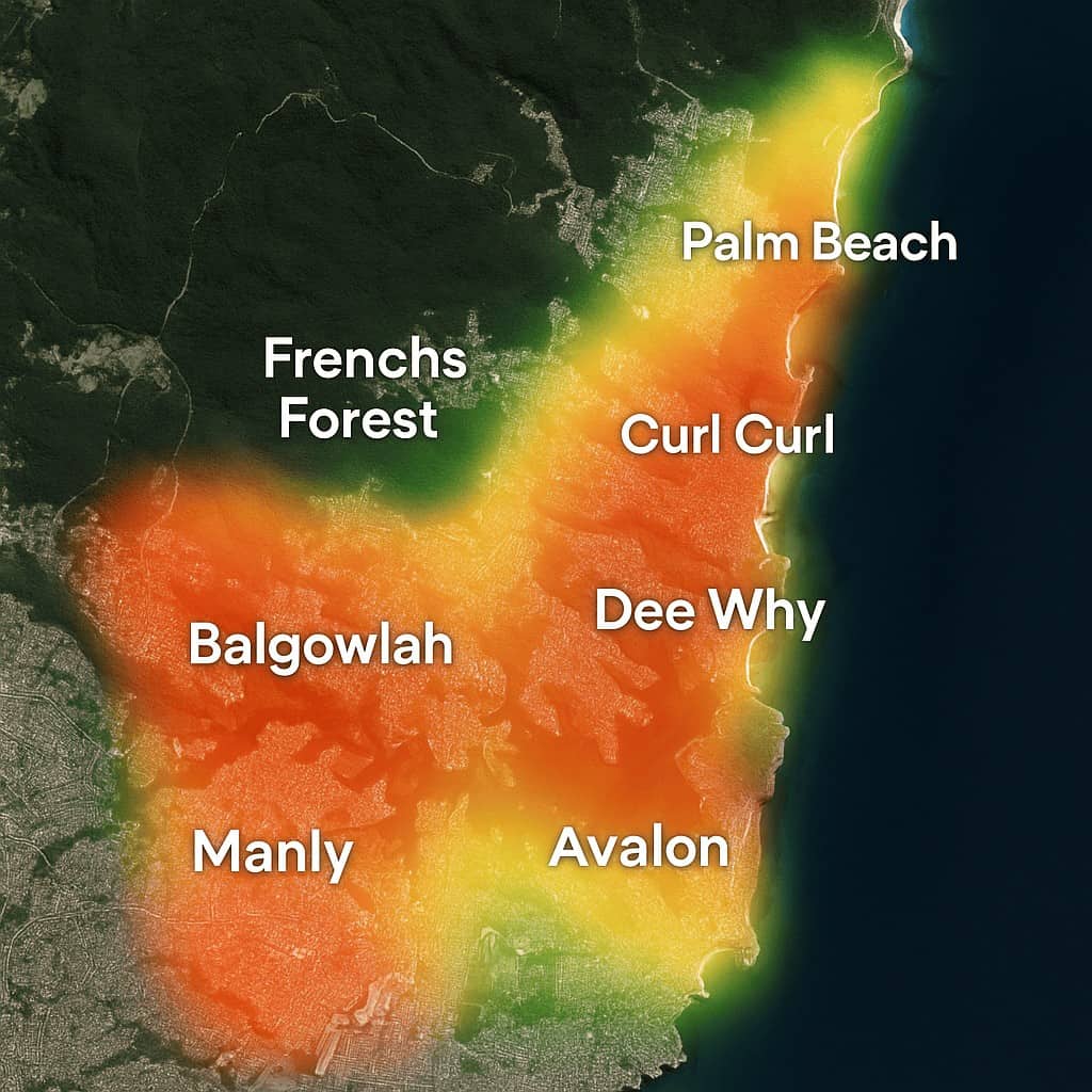 Frenchs Forest, Belrose, Davidson, Terrey Hills and Oxford Falls – leafy “forest district” suburbs with heavy tree cover and bushland interfaces.