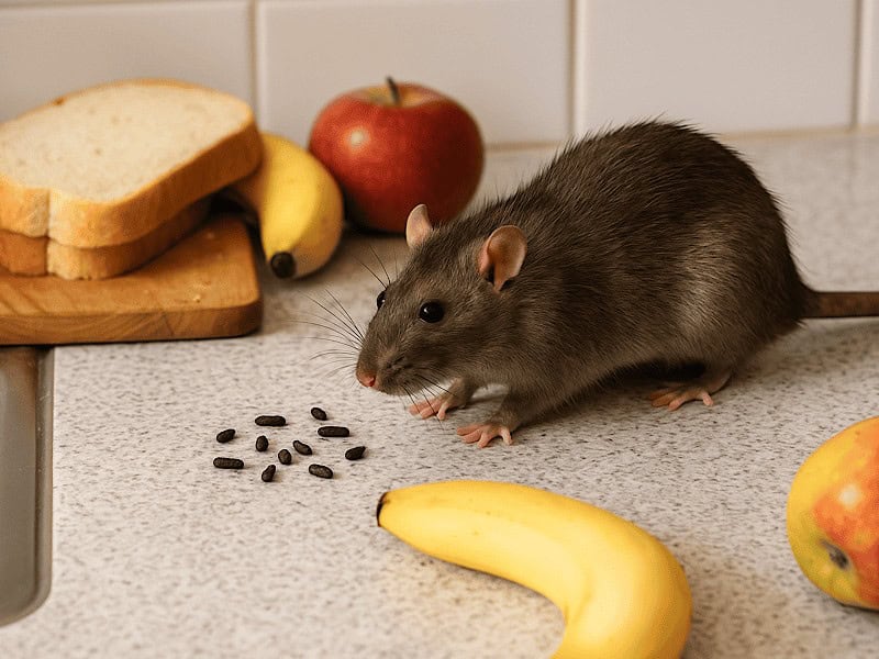 - Food contamination: Beyond the obvious consumption of food, rodents contaminate far more than they eat through urine, droppings, and hair, often requiring complete disposal of pantry contents.