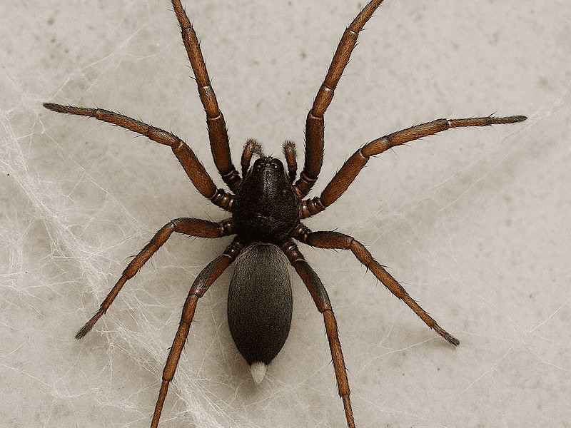 Black house spiders (Badumna insignis) are common across the Northern Beaches and are often mistaken for funnel-webs due to their dark colouring. They are medium-sized, robust spiders that prefer to stay hidden in their messy, funnel-shaped webs, usually spun in sheltered areas around homes and buildings.