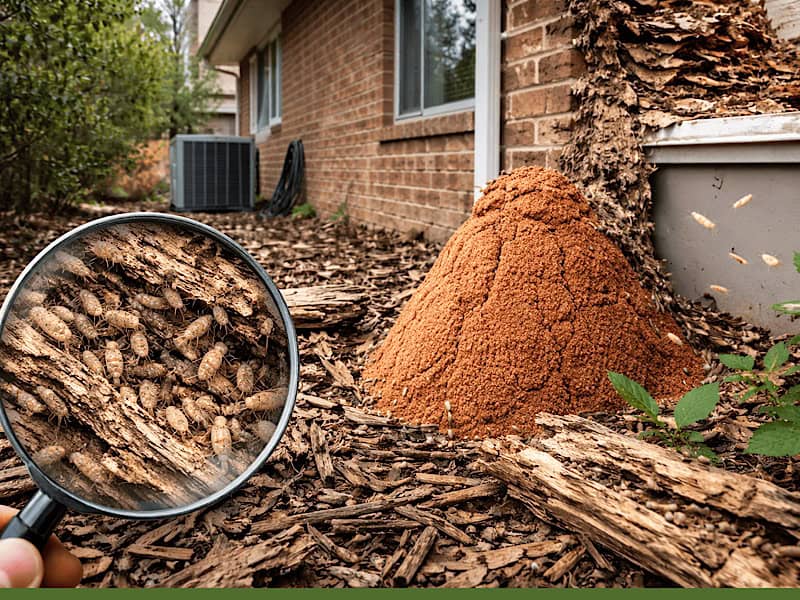 A visible termite mound near a home is a strong indicator of active termite pressure in the area and significantly increases the risk of infestation if proper protection is not in place.